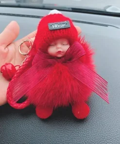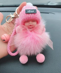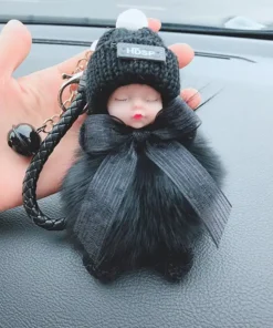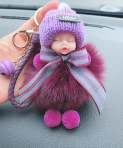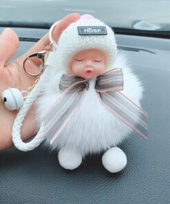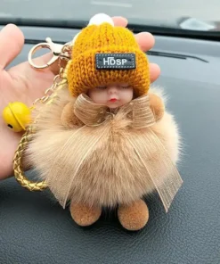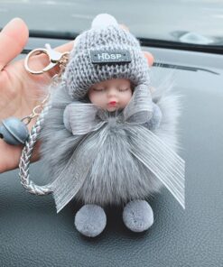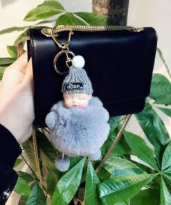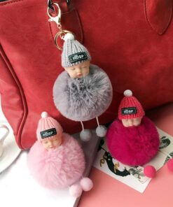 - Materiál: umělé imitace liščí/králičí kožešiny, sušená květina nebeské hvězdy, kovová klíčenka, silikonové roztomilé miminko + vlněná čepice