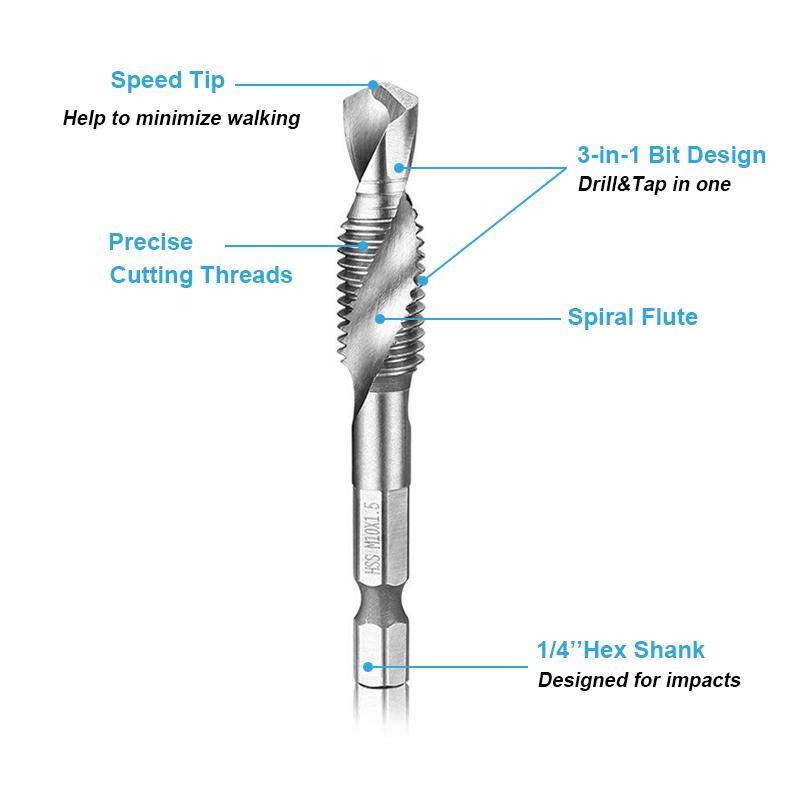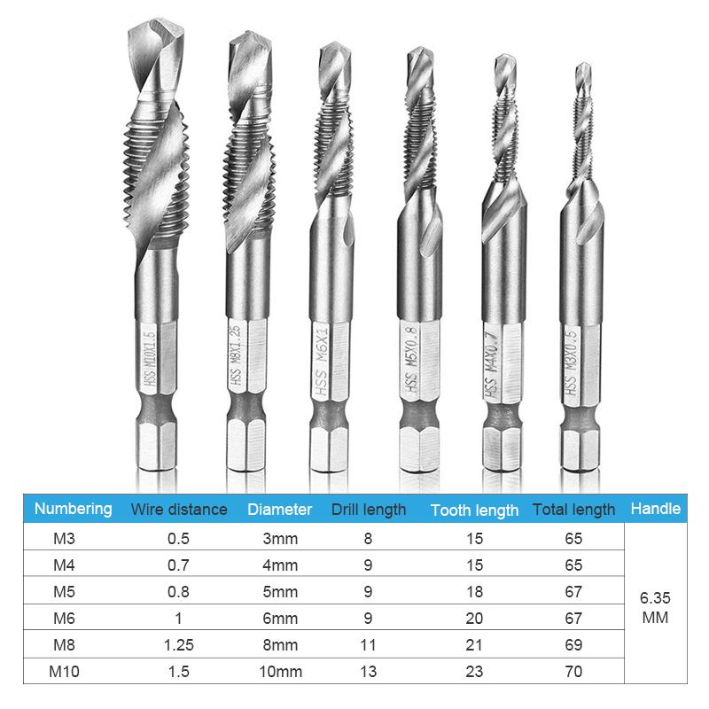 Metrické závitové vrtáky 6PCS (M3 – M10)