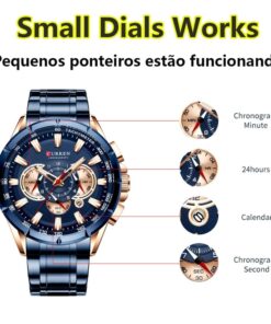 Materiál pouzdra: Vysoce kvalitní slitina Průměr pouzdra: 48 mm Tloušťka pouzdra: 14 mm Materiál pásku: Nerezová ocel Délka pásku (včetně pouzdra): 240 mm Šířka pásku: 24 mm Čistá hmotnost: 172 g Pohyb: Originální japonský quartzový strojek 30 metrů Voděodolný (podpora při plavání a za studena) Všechny malé číselníky fungují